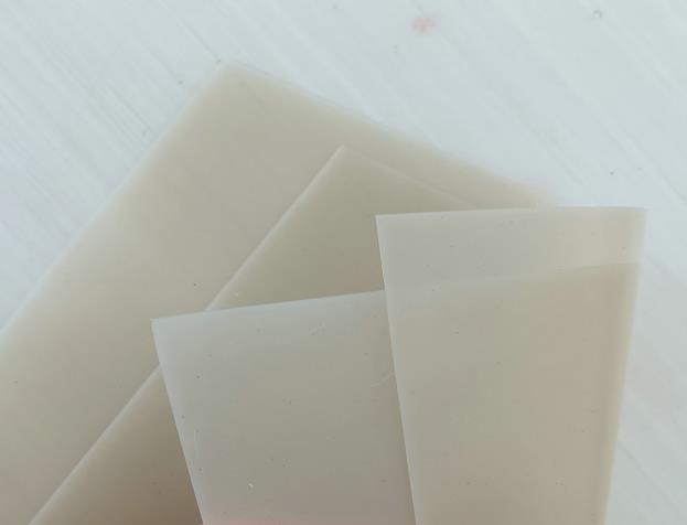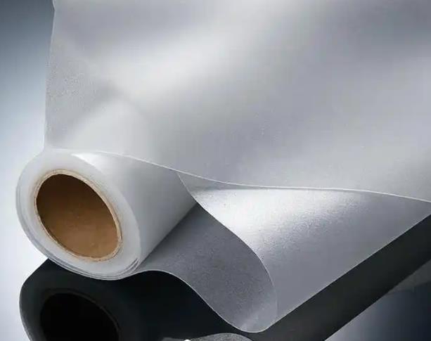 Waterproof material without internal reinforcement or backing material.